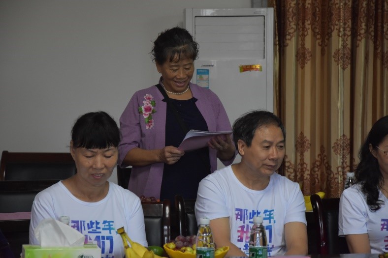 教师代表张克梅老师发言。在国庆、中秋两节来临之际,她吟诗作赋,表达了对校友们地热烈欢迎。并祝贺学生毕业后取得了优异的成绩,在新的岗位上大展宏图。她真诚地希望学生们常回家看看,加强联系、沟通,分享经验。