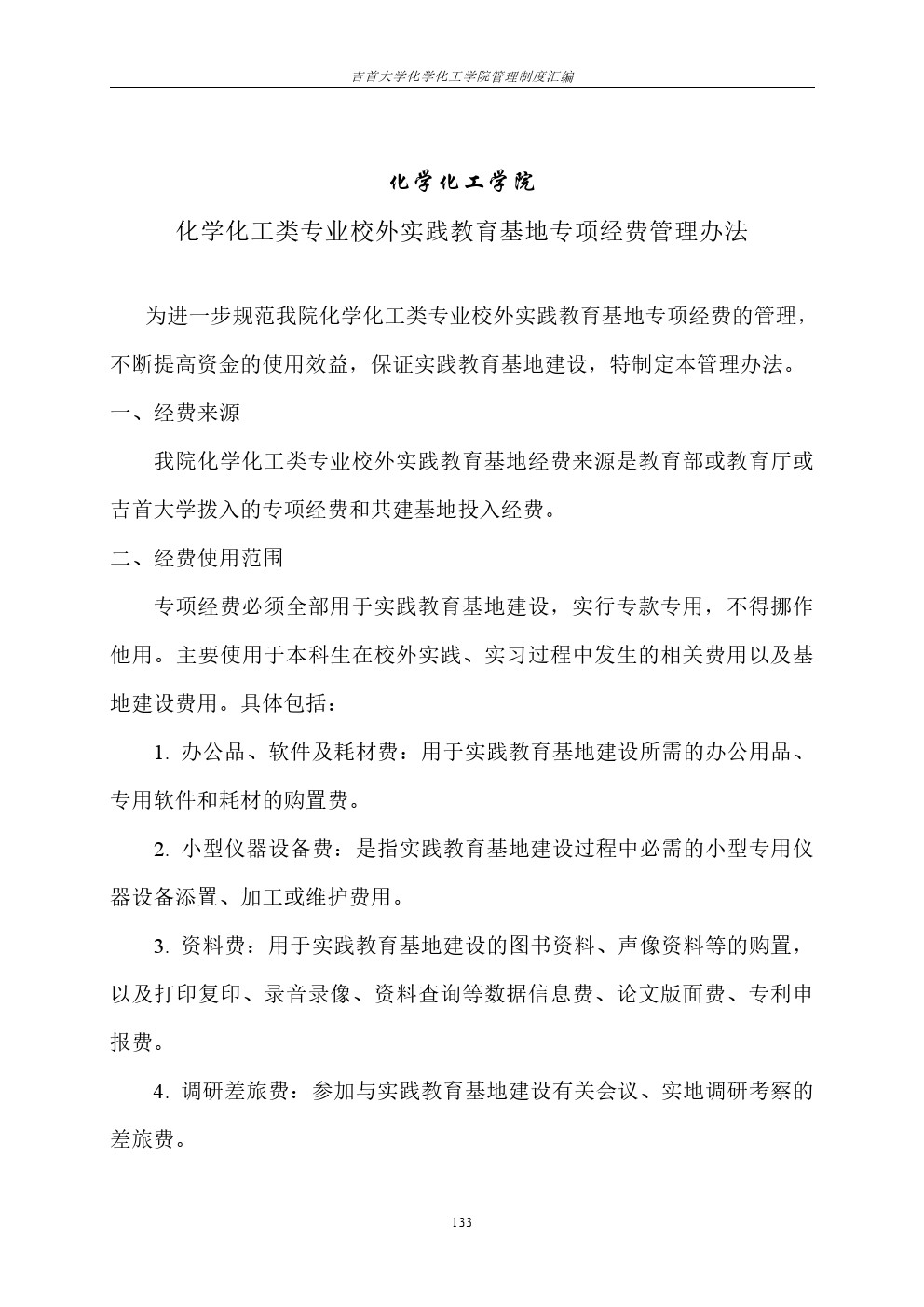 化学化工类专业校外实践教育基地专项经费管理办法